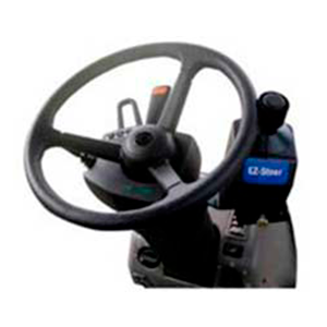 A direção assistida EZ-Steer® gira o volante para você combinando uma roda de fricção e um motor com a orientação de qualquer display da Trimble® (com exceção o GFX-750TM).